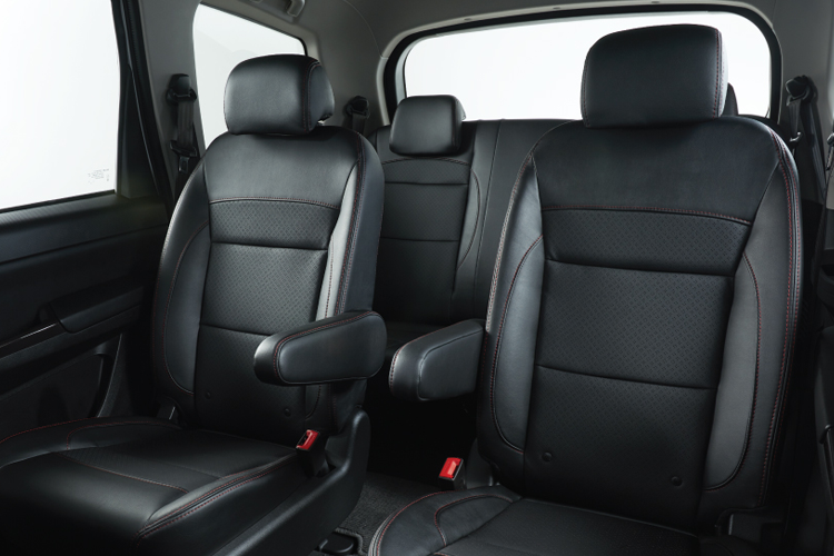 Selanjutnya, pada area interior yang dapat menampung 7 hingga 8 penumpang. Varian ini menghadirkan kabin spacious berkat jok Captain Seat pada baris kedua. Didominasi balutan warna hitam pada dashboard hingga door trim serta jok berlapis kulit sintetis.